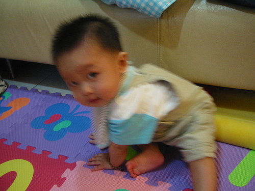爬著爬著累了,會自己坐起來休息一下,等恢復體力了再繼續爬,加油喔!!!