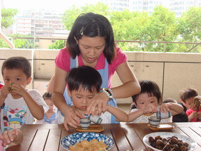 今天老師帶著小朋友到園長家泡茶,很有意思的生活課程。